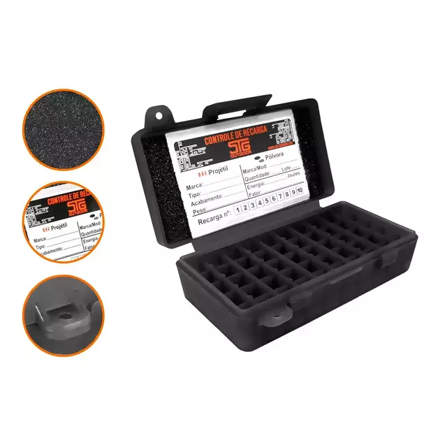 Caixa Para 50 Munições Cal .380 9mm E .38TPC STG com Trava Antirruído - Black Piano